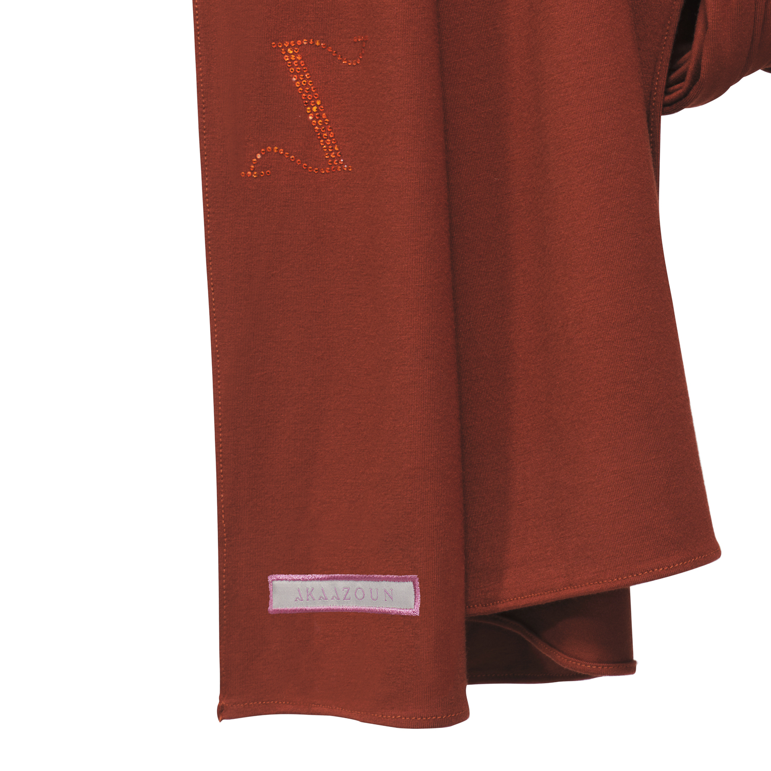 One side is finished with our signature brand details, featuring a subtle label and delicate stone embellishments that add a touch of understated luxury.