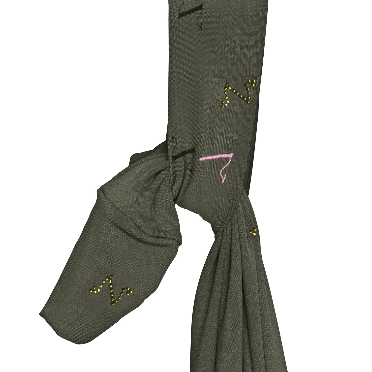 Thoughtfully designed for both elegance and ease, this piece is made from a silky-soft, premium fabric that flows effortlessly. The scarf and strap share the same base color, creating a harmonious and minimalist silhouette. A delicate, all-over design adds a subtle layer of depth and uniqueness; refined enough to stay understated, yet distinctive enough to elevate any look. Scattered accents of tiny stone-like embellishments add a gentle sparkle, catching the light in just the right way. Ideal for those who appreciate quiet detail and timeless simplicity.